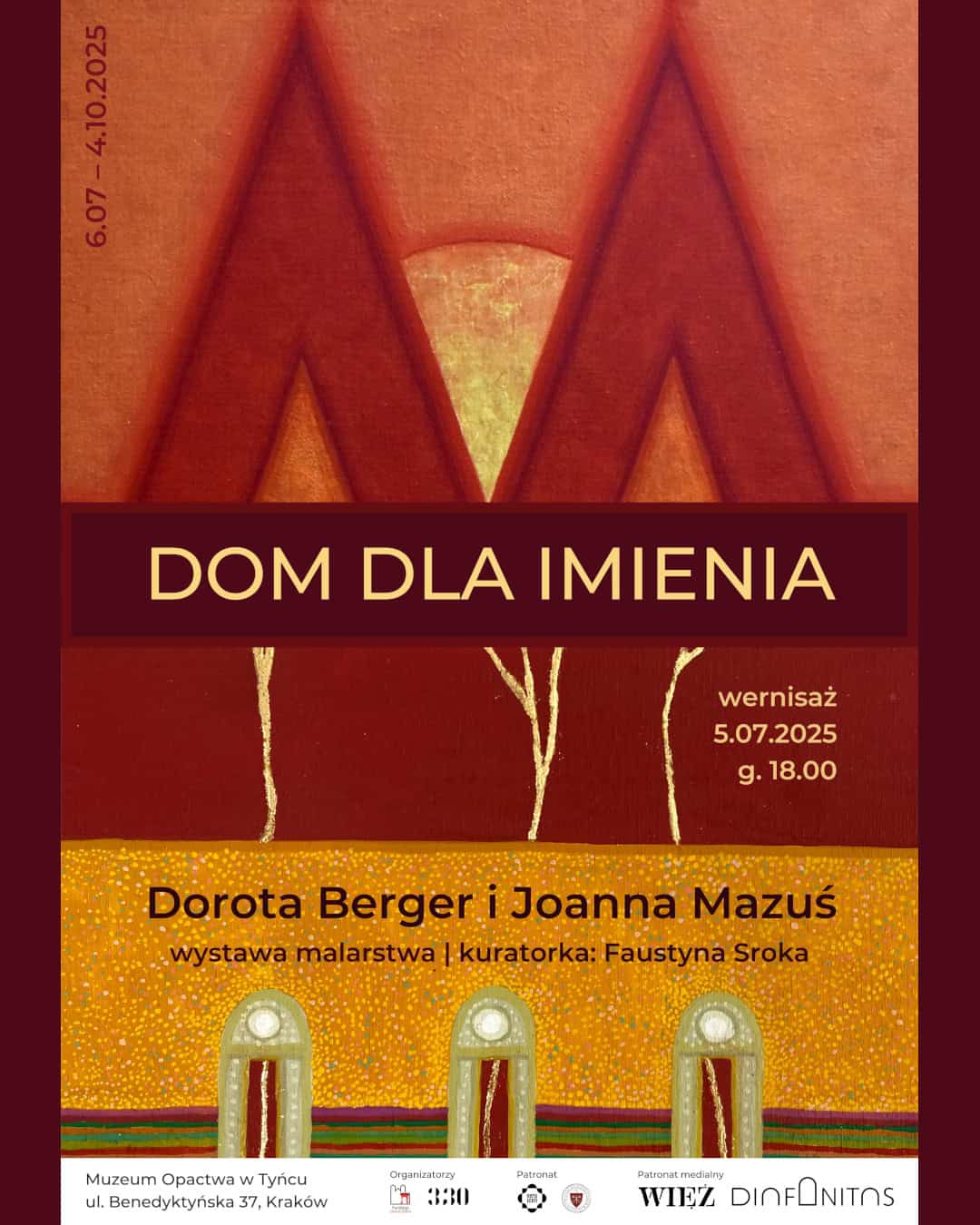 Zapraszamy wszystkich na nową wystawę w Muzeum Opactwa Benedyktynów w Tyńcu – „Dom dla Imienia”. Jej otwarcie nastąpi 5 lipca o godz. 18.00. Towarzyszyć jej będą słowa On zbuduje dom Imieniu Memu (2 Sm 7,13).