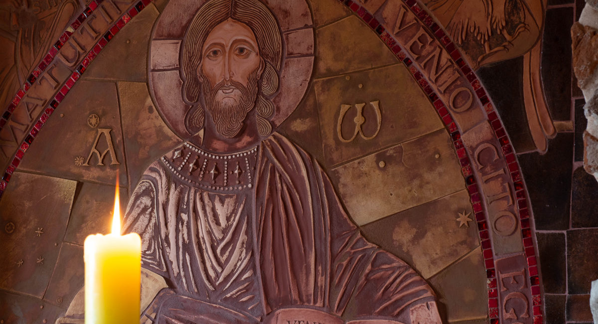 Fot. Marcin Marecik / Na zdjęciu: fragment mozaiki ceramicznej przedstawiający „Maiestas Domini” z kaplicy w opactwie tynieckim. Wykonanie: Borys Kotowski OSB.